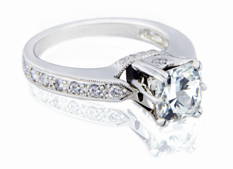 Такое кольцо - самый распространенный тип колец. Особенно для женских колец с крупным бриллиантом. В подобных моделях главное внимание уделяется драгоценных камням. В этом случае бриллиант помещается на верхней стороне кольца и закрепляется тремя металлическими зубцами. Главное в таком кольце, чтобы камень был надежно на нем закреплен и в то же время свет мог со всех сторон попадать на бриллиант, усиливая блеск камня. Но вот парадокс! Если для закрепления бриллианта используются много металла и камень лучше держится, он начинает меньше блестеть… а это уже не тот эффект…